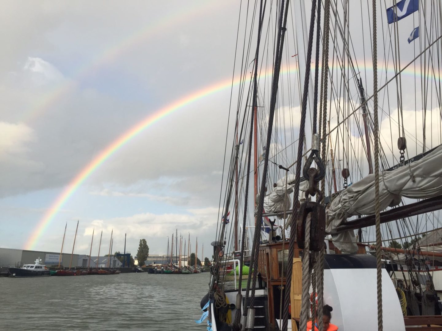 De regenboog bij de haven van Makkum. De foto is genomen vanaf De Vrijheid.